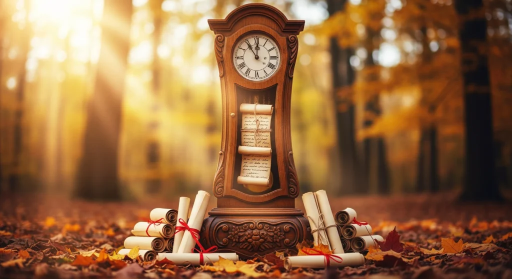 Example: We measured gains, autumn like a market counting the day’s coins.